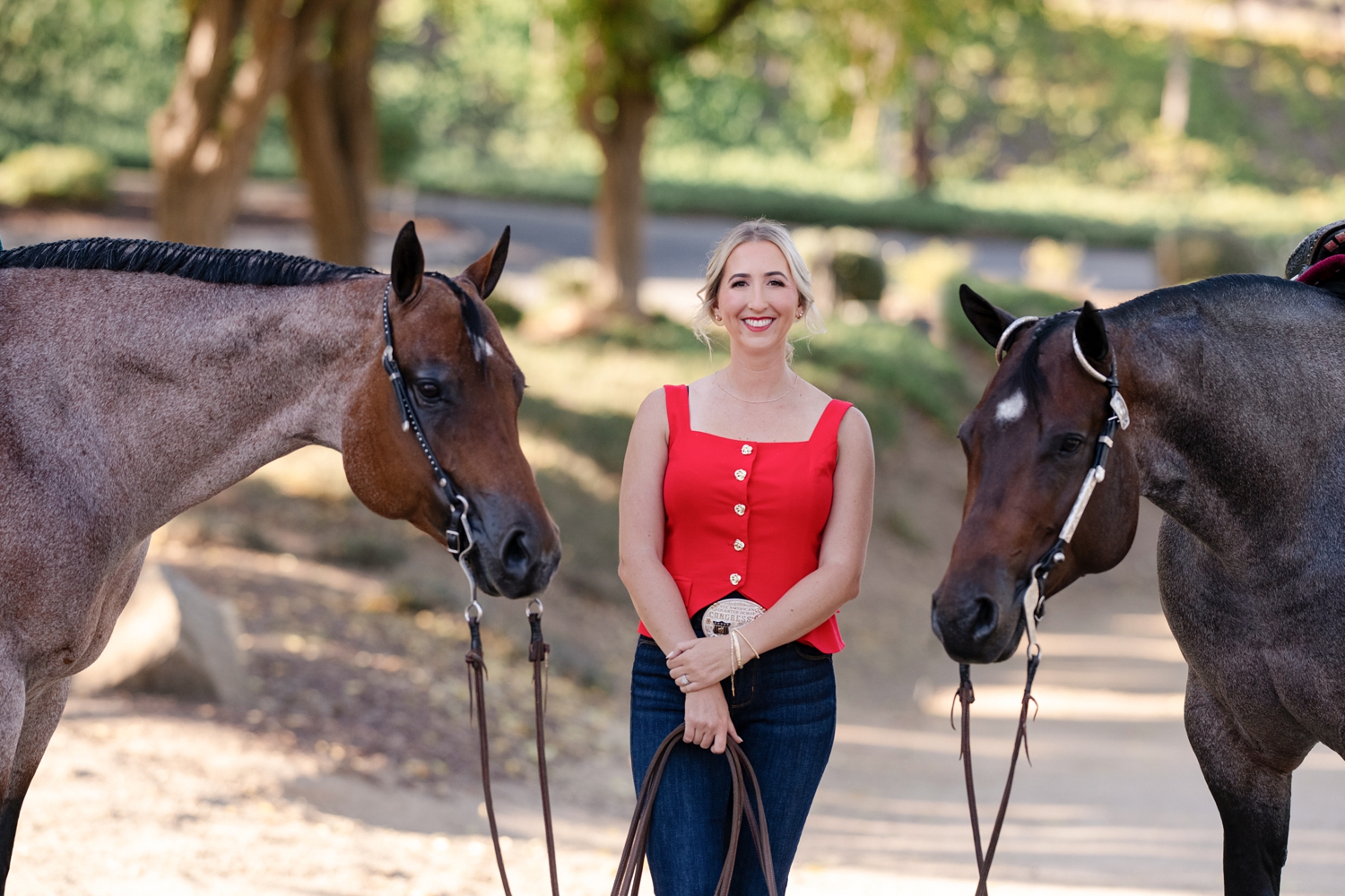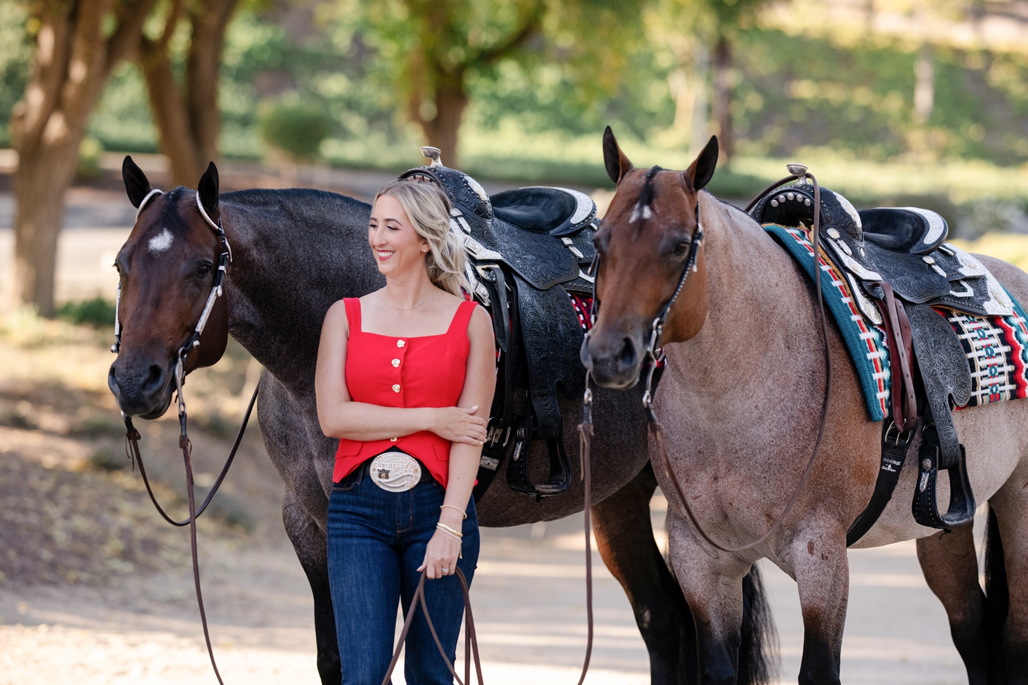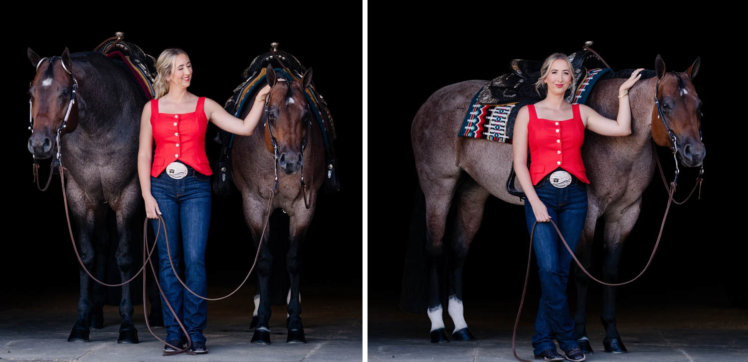 Samantha Foust and her AQHA mares “Lady Marmalade” and “Cool Cruzen Lady” at Tonya Brown Quarter Horses in Escondido, California.