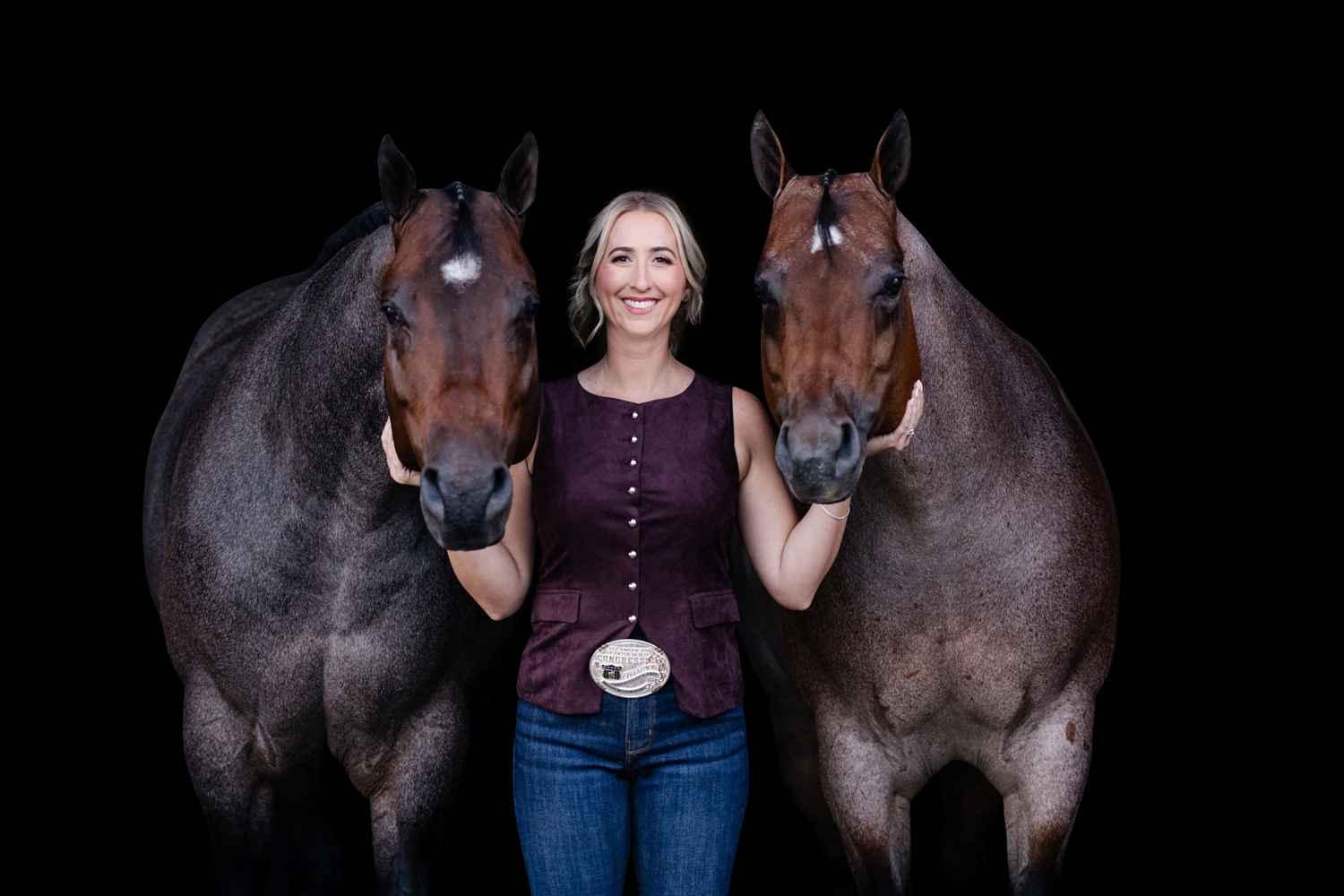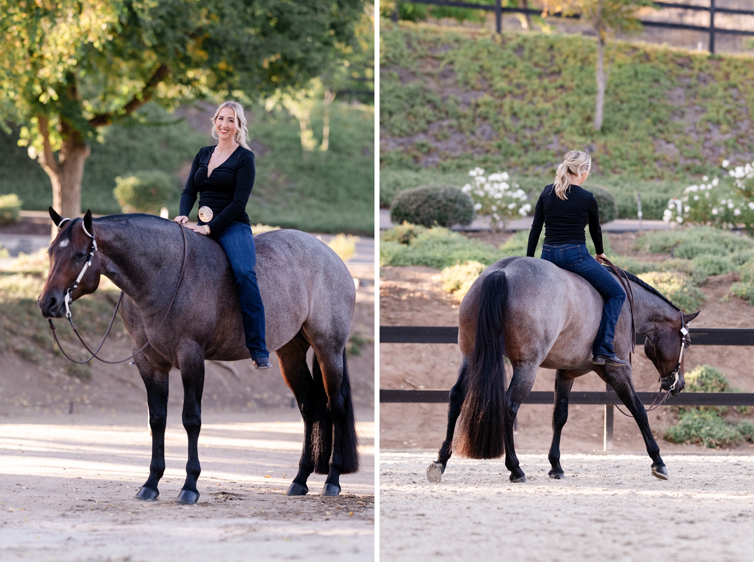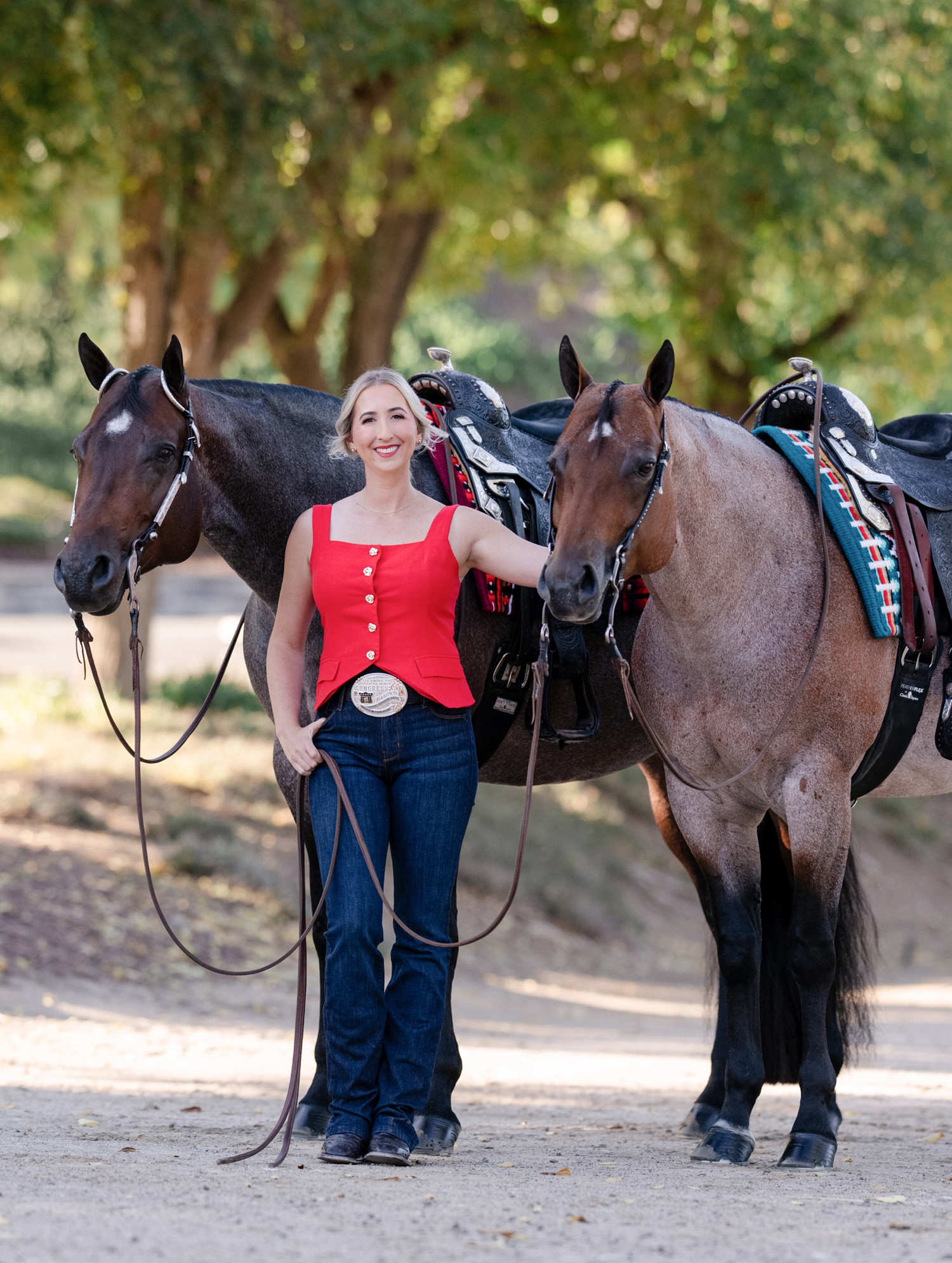 Samantha Foust and her AQHA mares “Lady Marmalade” and “Cool Cruzen Lady” at Tonya Brown Quarter Horses in Escondido, California.