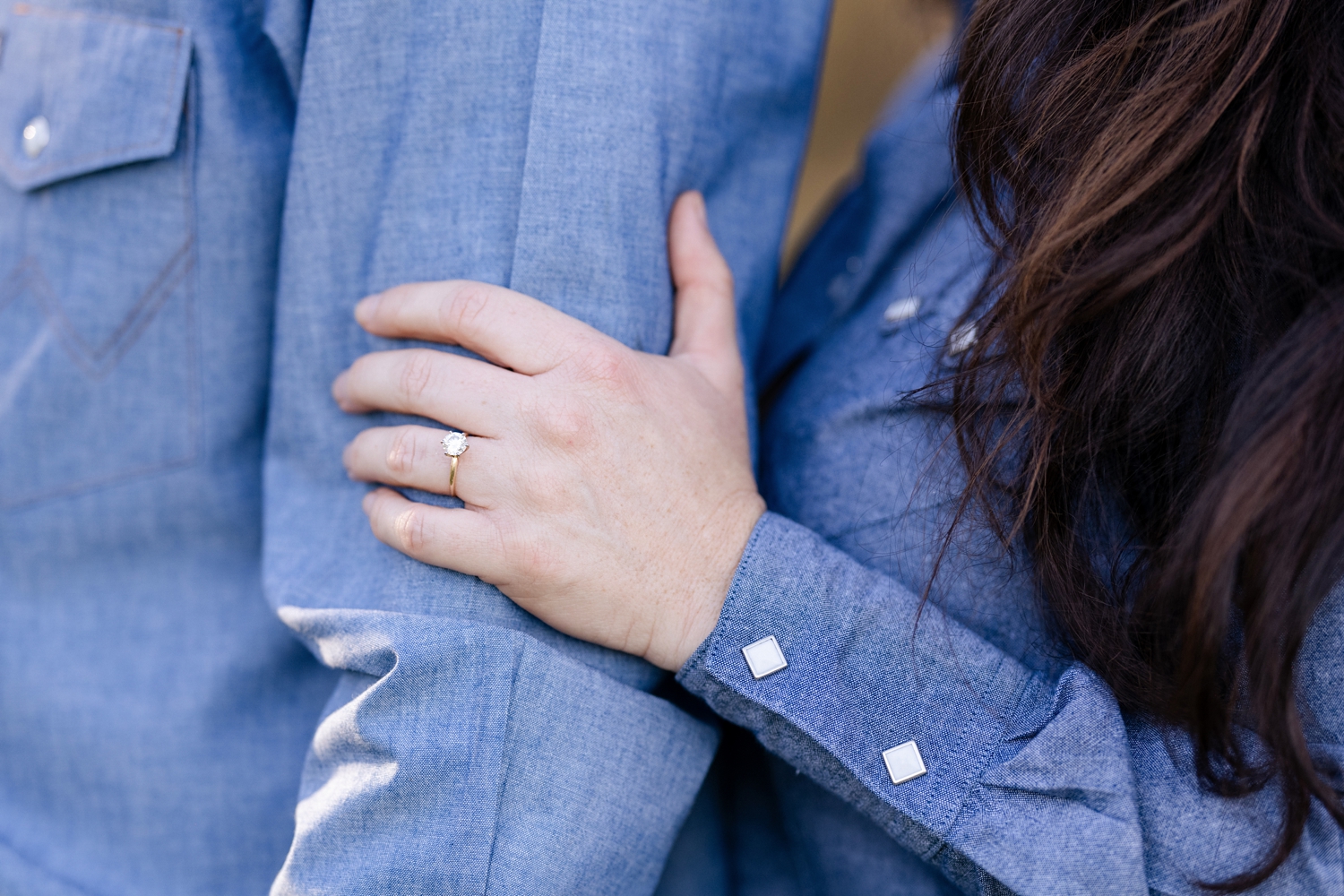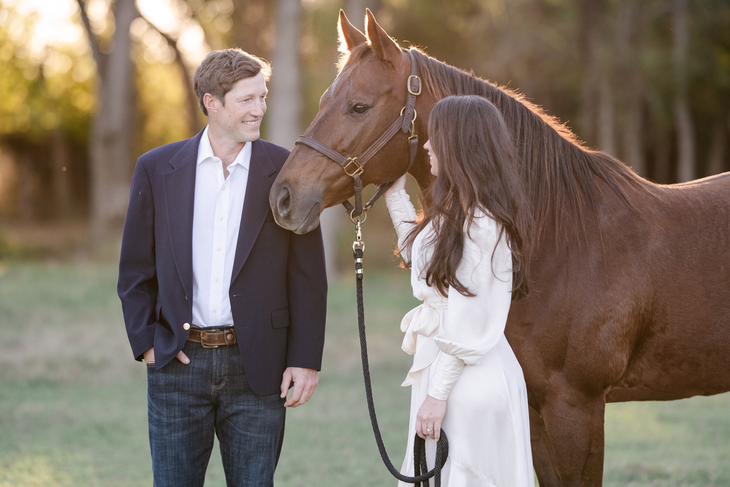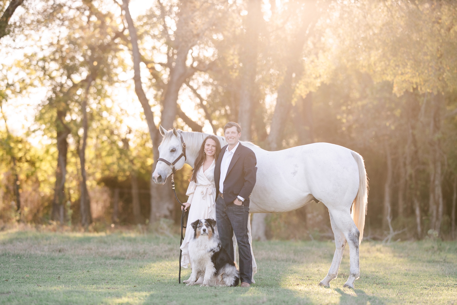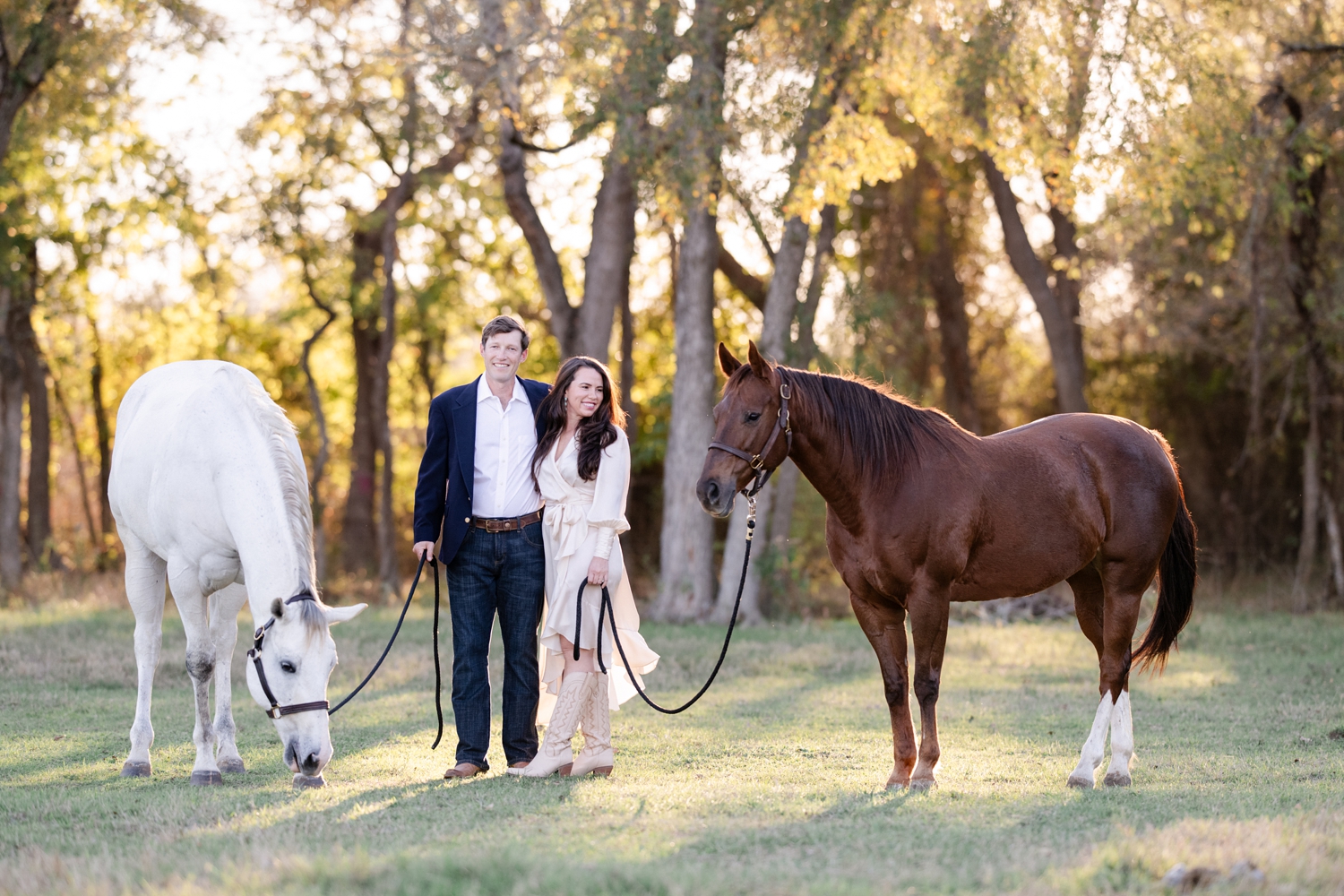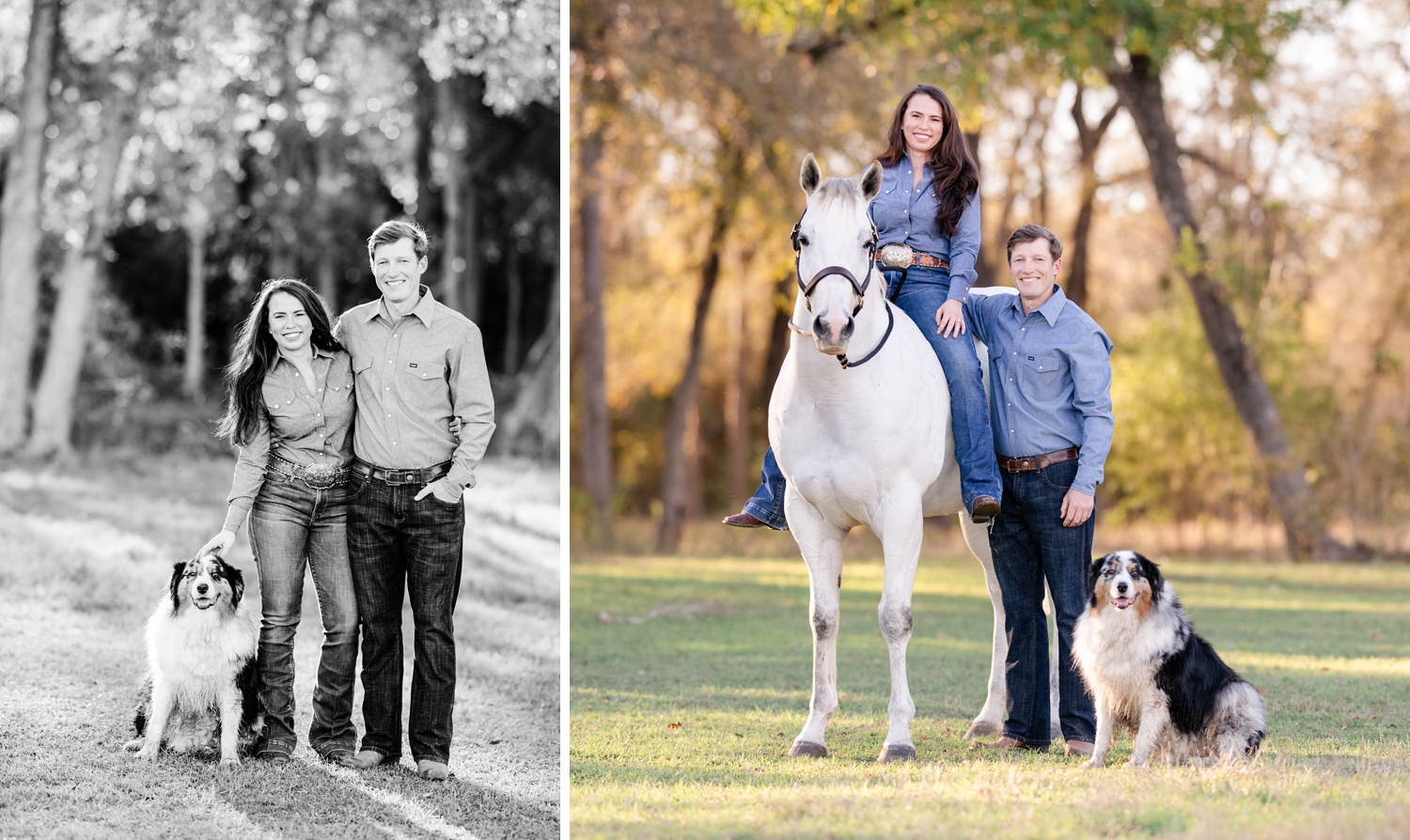 Taryn Sheldon and Ted Maas celebrating their engagement with their AQHA racing horses in Elgin, Texas.