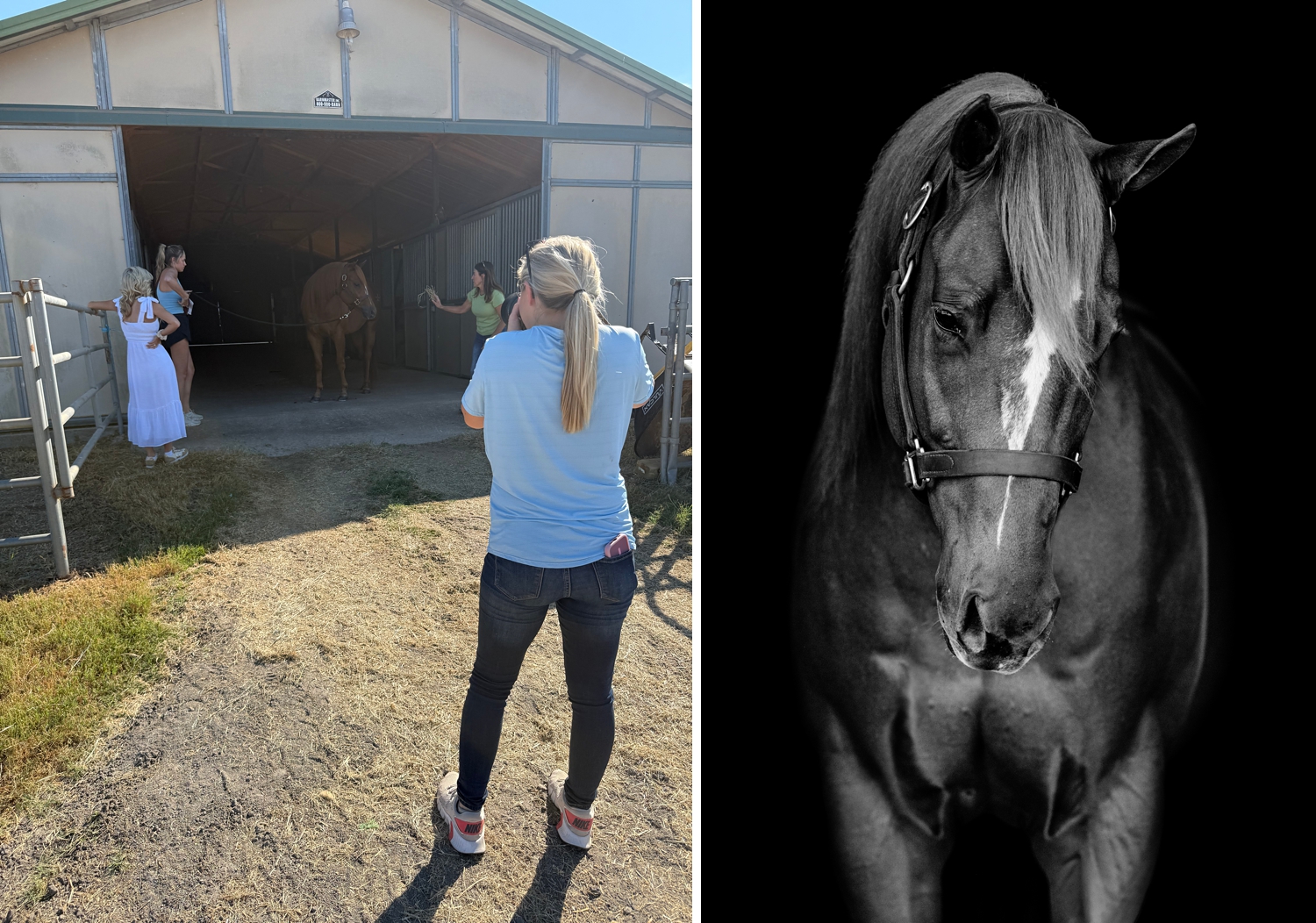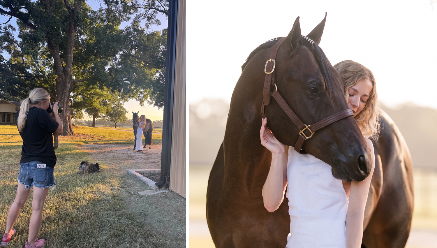 We can look at the same thing but see it. First and foremost, I am scouting light over the background. Next, I’m considering the composition through my lens and oftentimes hiding something like an ugly dumpster with the body of the horse. Sometimes I have the magic of Photoshop and post-production editing in mind to fix the flaws.